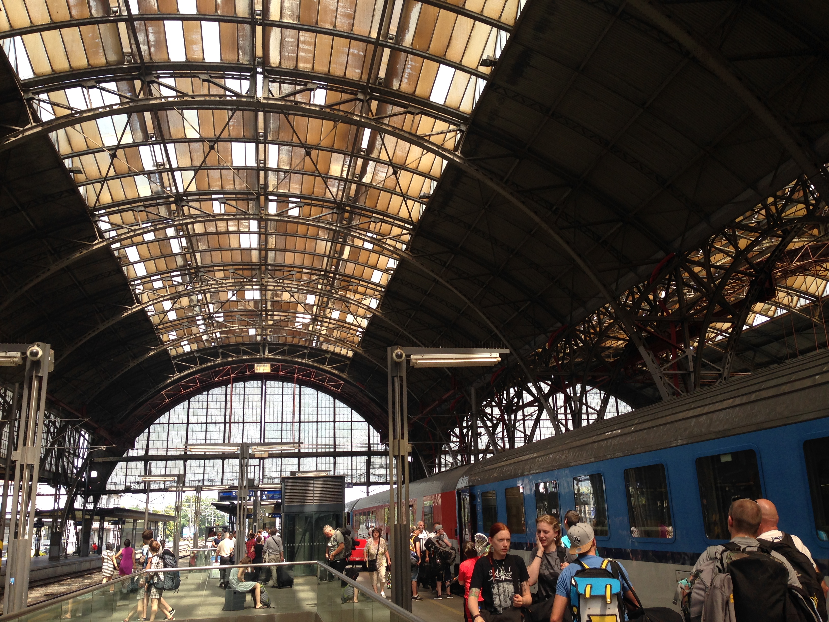 Glücklich, dass ich unsere Reiseplanung ein wenig aus der Hand geben konnte, verließ ich mich blind auf alle Ansagen meines geliebten Reisepartners. „Selbst Schuld“, mahnte mein inneres Ich, als ich mir im Zug nach Prag meine blauen Schienbeine rieb und dabei in schuldbewusste Augen sah. Eine falsch abgelesene Uhrzeit und eine viel zu lange Busfahrt zum Hauptbahnhof waren die Gründe dafür, dass wir in den schon anfahrenden Zug springen mussten und ich mit einem Ruck auf beiden Schienbeinen landete – immerhin im Zug! Mit rasendem Puls starrten wir in die ungläubigen Gesichter der Erste-Klasse-Bahnreisenden. Vermasselt-geglückter Reiseauftakt: Check.