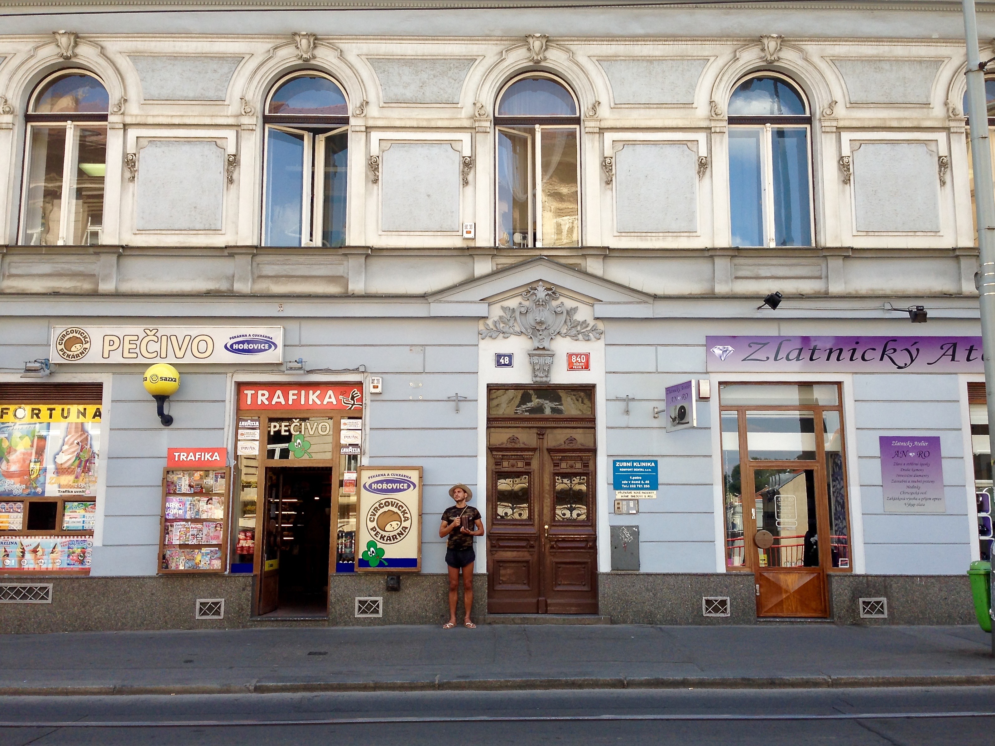 Etwa fünf Stunden später kamen wir in der Prager Innenstadt in unserem süßen Pensionszimmer unterm Dach an. Einziger, aber sehr verschmerzbarer Wermutstropfen: Die Mittagshitze der tschechischen Sommersonne machte vor unserem Zimmer nicht Halt. Nach einem Supermarktbesuch für das Nötigste (Kaffee, Milch, Brot, Käse & Bier) schoben wir die beiden einzelnen Betten zusammen und fielen in einen sehr tiefen und langen Spätnachmittagsschlaf.