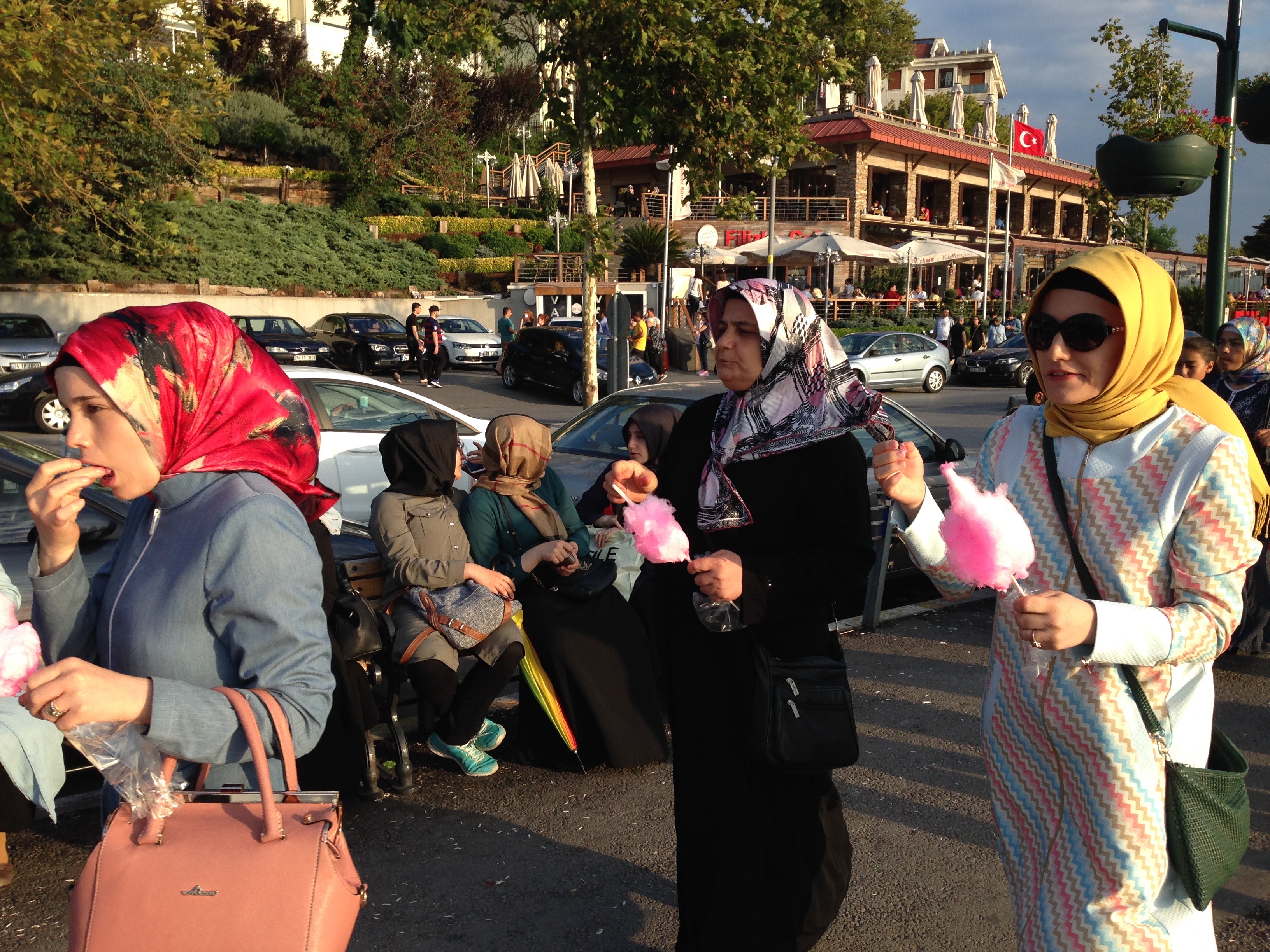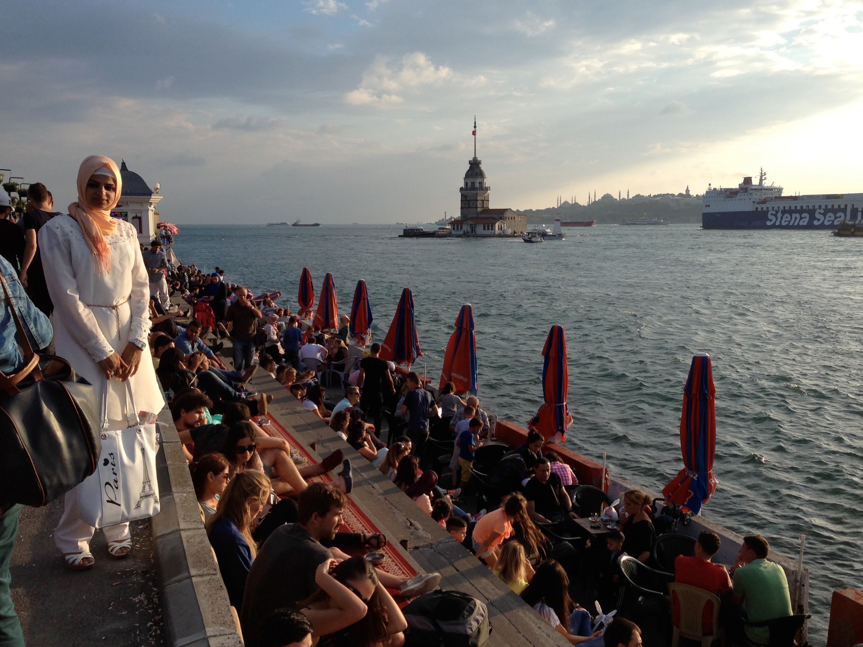 Schließlich genossen wir den Sonnenuntergang am von Fischern gesäumten Bosporus und saßen zwischen Tee trinkenden und Sonnenblumenkernen knabbernden Einheimischen. Wir bestellten uns auch einen Tee und beobachteten das sonntägliche Flanieren.