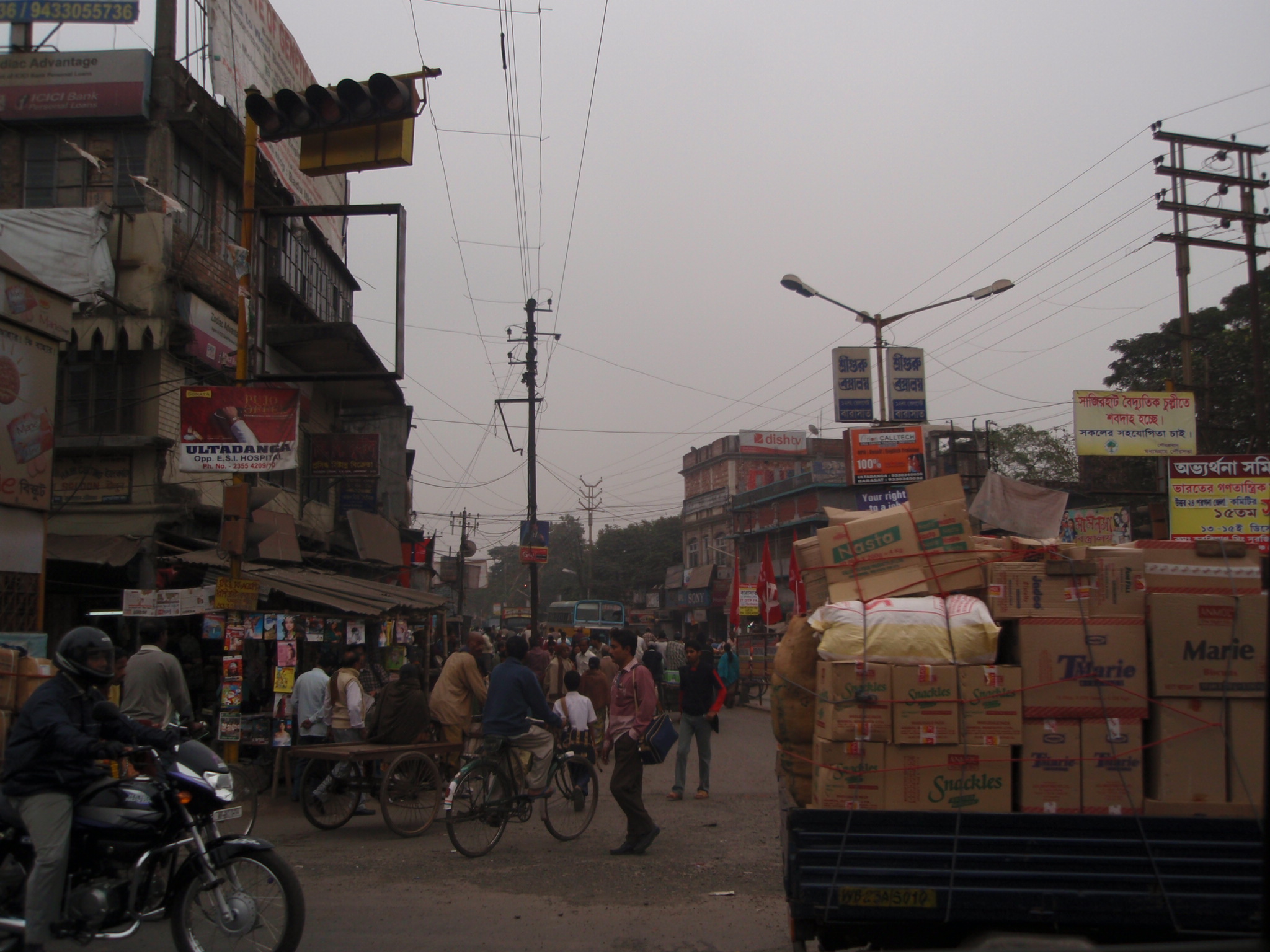 Wenige Minuten Später saß ich in dem Taxi. Ich öffnete das Fenster und die schwül-warme Luft von draußen mischte sich mit dem Rauch des Räucherstäbchens, das auf dem Armaturenbrett im Taxi abbrannte. Wir fuhren durch Vororte und Bangalore. Ich konnte meinen Augen kaum trauen. Tatsächlich. Obwohl die Sonnenstrahlen sich ihren Weg durch den Smog noch nicht erkämpft hatten, war alles bunt: Tempel, Gemüsestände, die Kleider der Menschen und die bunt bemalten Traktoren. Zudem bestätigten sich die Prophezeiungen über den indischen Straßenverkehr. Es gab keine Regeln. Die Fahrer hupten und brüllten und fuhren auf den unbefestigten Straßen viel zu schnell. Ich hatte Angst, dass es zu einem Unfall zwischen den Rikschas, Bussen, Traktoren, Eselkarren, Fahrrädern, Fußgängern oder Kühe kommen könnte. Staunend und etwas bangend verging die Taxifahrt wie im Flug und ich kam übermüdet, unfallfrei und glücklich bei Sabita an.