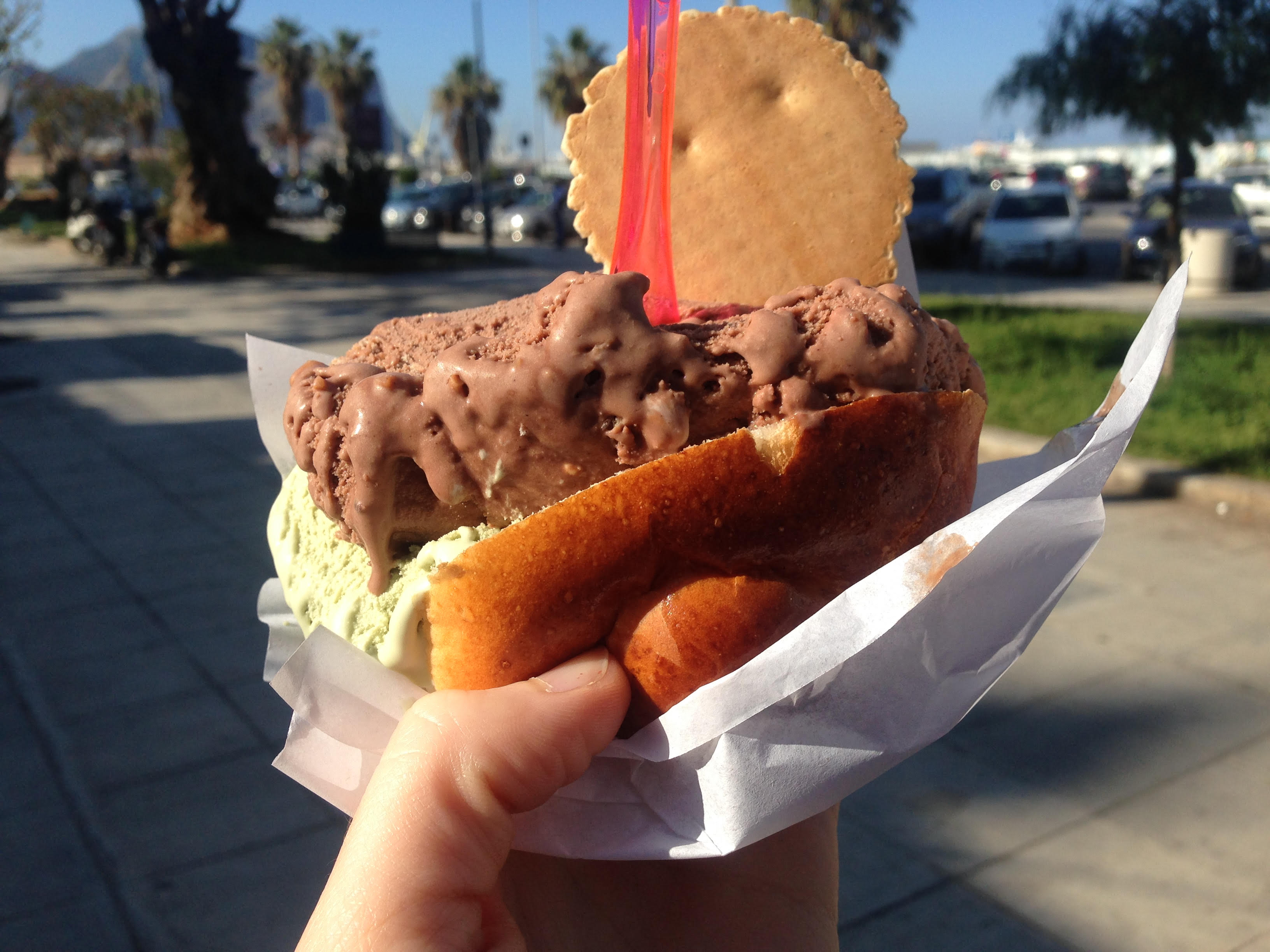 Dass es Eis geben würde, überraschte uns nicht. Dass es traditionell im Brioche gegessen wird und damit so groß wie ein Döner ist, war allerdings eine Überraschung.