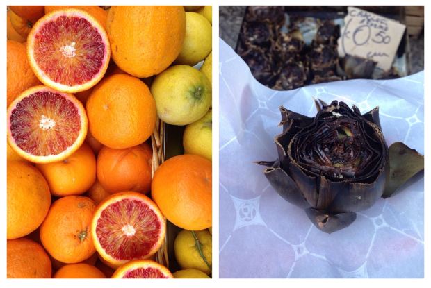 Neu waren für uns Arancini. Das sind frittiert und gefüllte Reisbällchen (wobei es eher Bälle heißen sollte, da sie sehr satt machen), die je nach Tradition rund oder konisch sind. Die Füllung reicht von vegetarisch über Fleisch bis hin zu Schwertfisch, dem Speisefisch-Klassiker der sizilianischen Küche. Ebenso traditionell für Sizilien, und bei Palermitanern von jung bis alt sehr beliebt, ist das „pani ca meusa“ (dt.: Brot mit Milz). Kleine, gekochte Milzstückchen (manchmal soll auch Lunge dabei sein) werden zwischen zwei Brötchenhälften gepackt, mit Zitrone beträufelt und mit Käse bestreut. Gekostet haben wir es, gemocht nicht. Gegrillte Artischocken und frisch eingelegt Oliven vom Markt hingegen waren einfach köstlich.