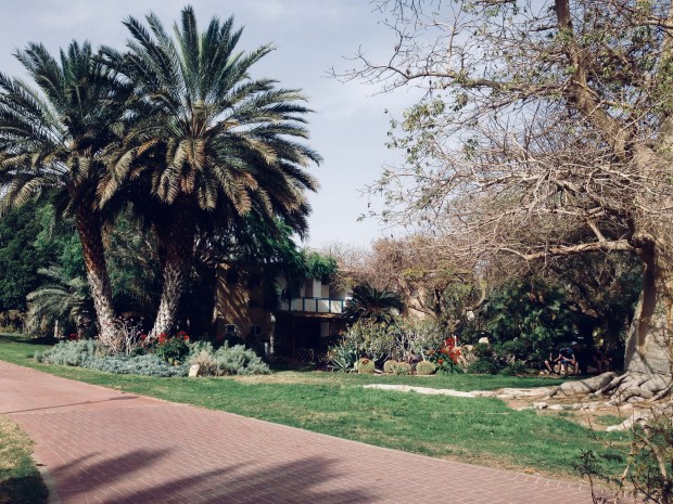 Die karge Wüstenlandschaft und der Blick über das Tote Meer faszinierten uns sehr und entschädigten die bisherige Enttäuschung. Wir hielten am Kibbutz „Ein Gedi“, dessen üppige Vegetation einen herrlichen Kontrast zur Wüste bot. Wir liefen durch den Kibbutz und tranken in einem (bezahlbaren) Café vor dem Haupteingang einen Kaffee und schaukelten in Hängematten, bevor wir uns auf den Rückweg nach Jersualem machten.